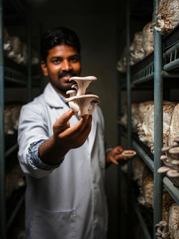 हमारी खेती में, हम locally sourced agricultural by-products जैसे straw, sawdust, और crop residues का इस्तेमाल करते हैं, जिससे waste reduction होती है और carbon footprint कम होता है। Vertical stacking techniques से limited space में भी maximum mushrooms grow करते हैं, water और electricity की बचत होती है।